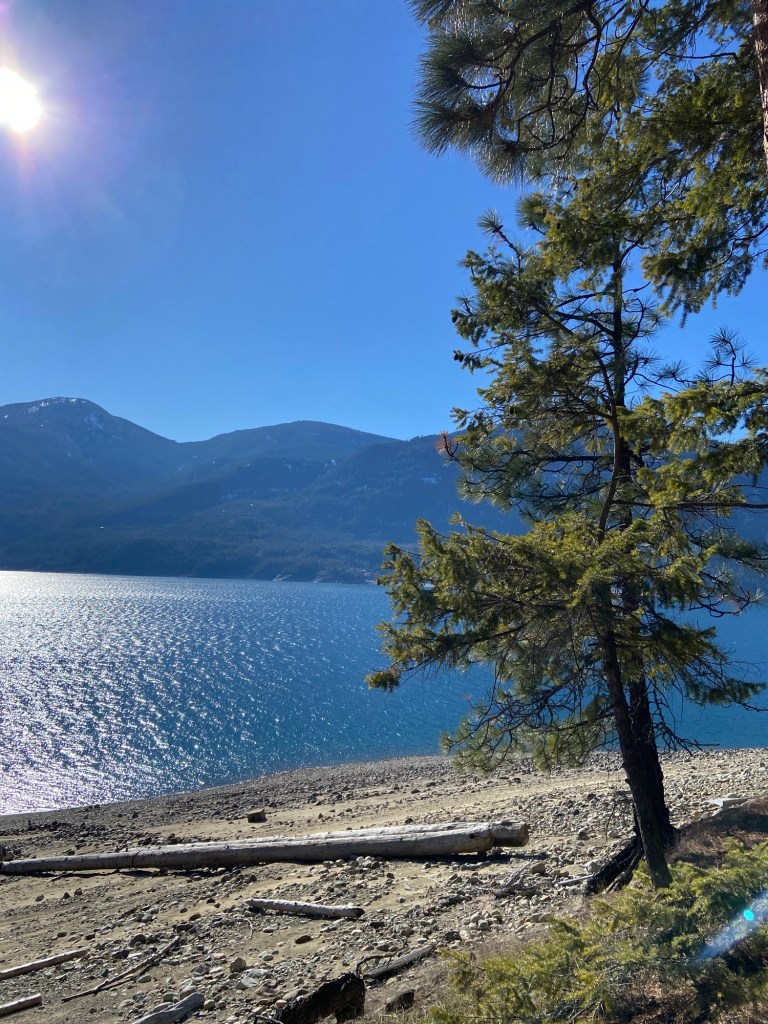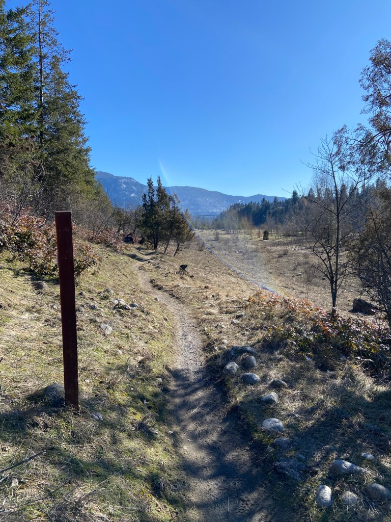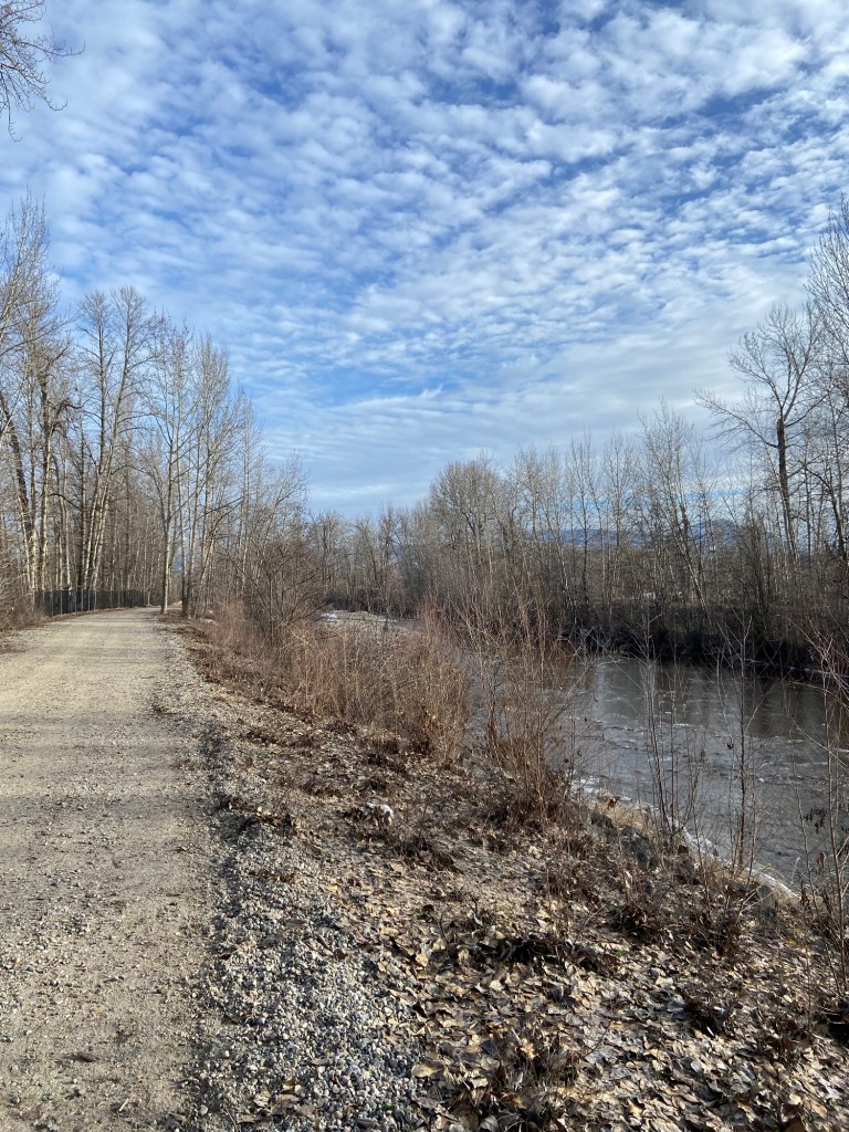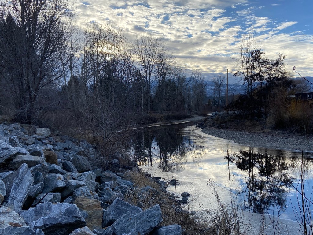 I like to set small goals to build my writing practice and build up a body of work. Maybe other writers can just plow through, but I often find myself stuck. When I need to puzzle out a problem or refresh my brain, I go to the water. A long walk alongside a river or lake grounds me and brings clarity and focus. I seek out water wherever I go. It feels like my life flows between and along the rivers. Lately, I’ve been visiting my favourite places: the trails at Selkirk College in Castlegar, our place at Arrow Lake, and Mission Creek in Kelowna.